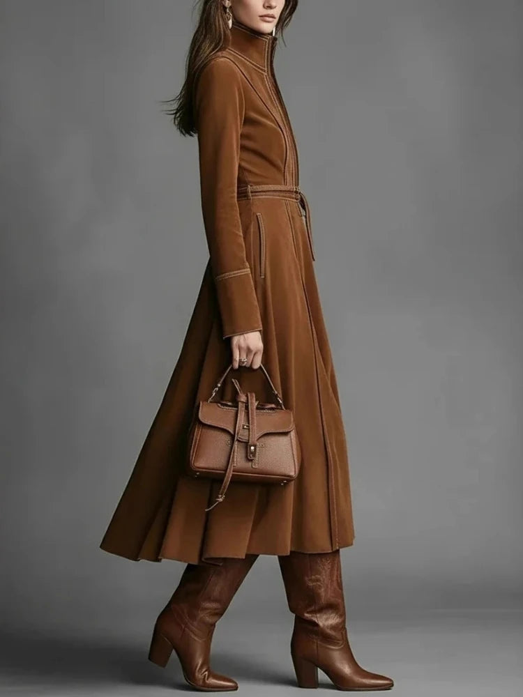 Elara – Langer Trenchcoat aus aus Wildleder-Optik